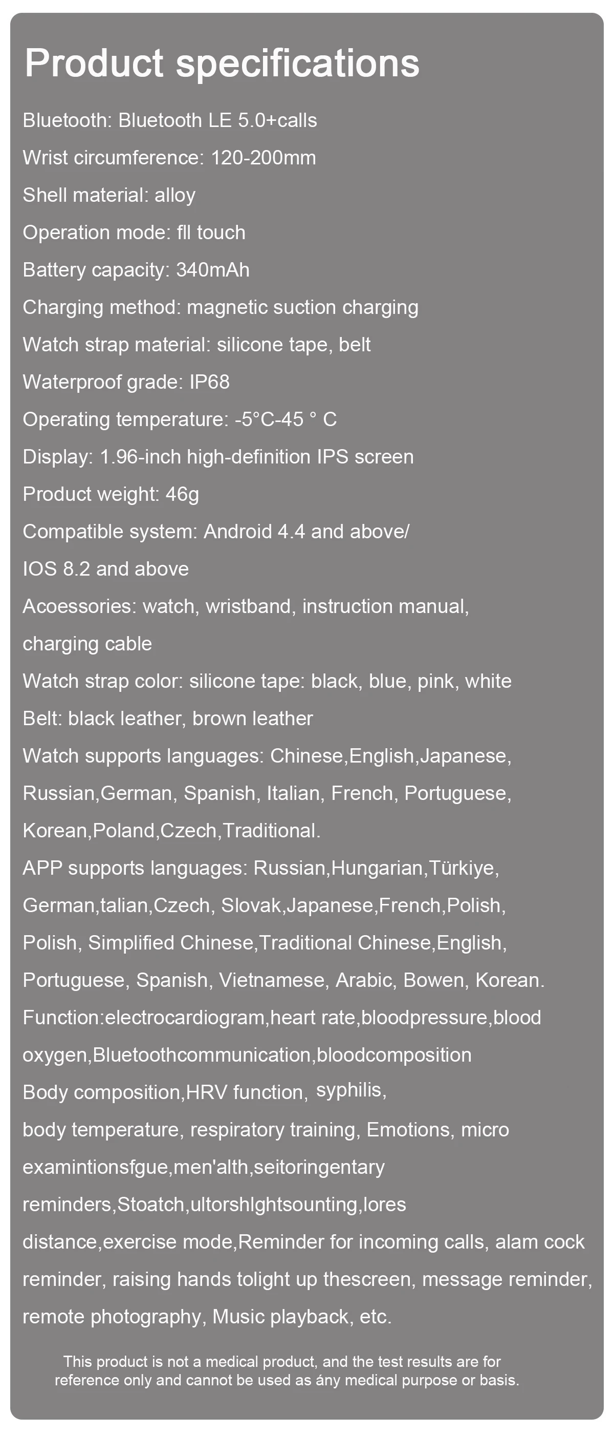 CPU Model: ECG+Micro Physical Examination High end Health Management Watch