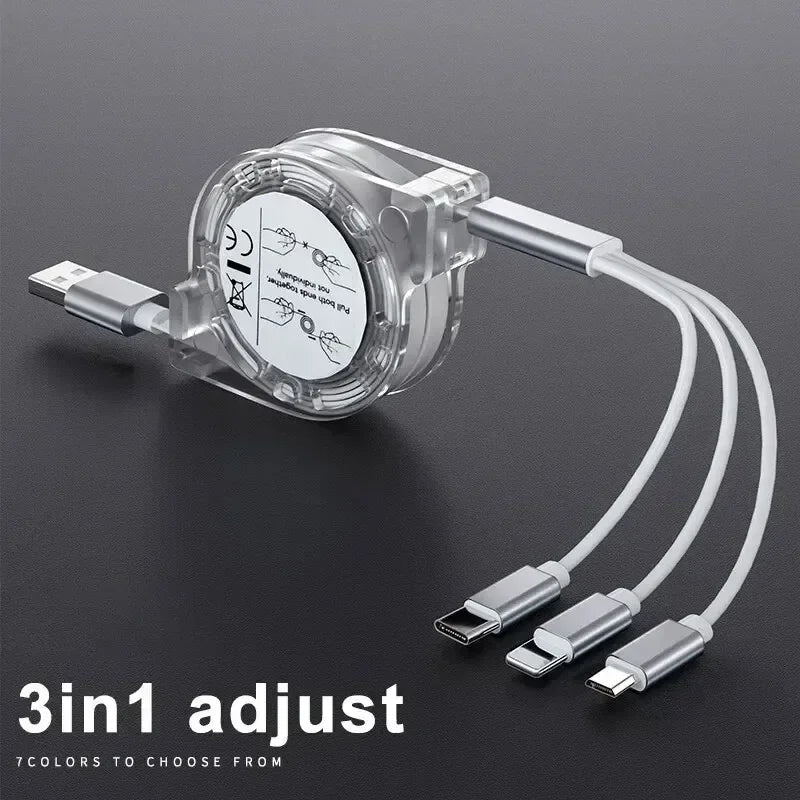 3 in 1 Telescopic Cable Suitable for Apple Type C Android Mobile Phone 3A Fast Charging USB Cable for iPhone Cable Usb C Cable