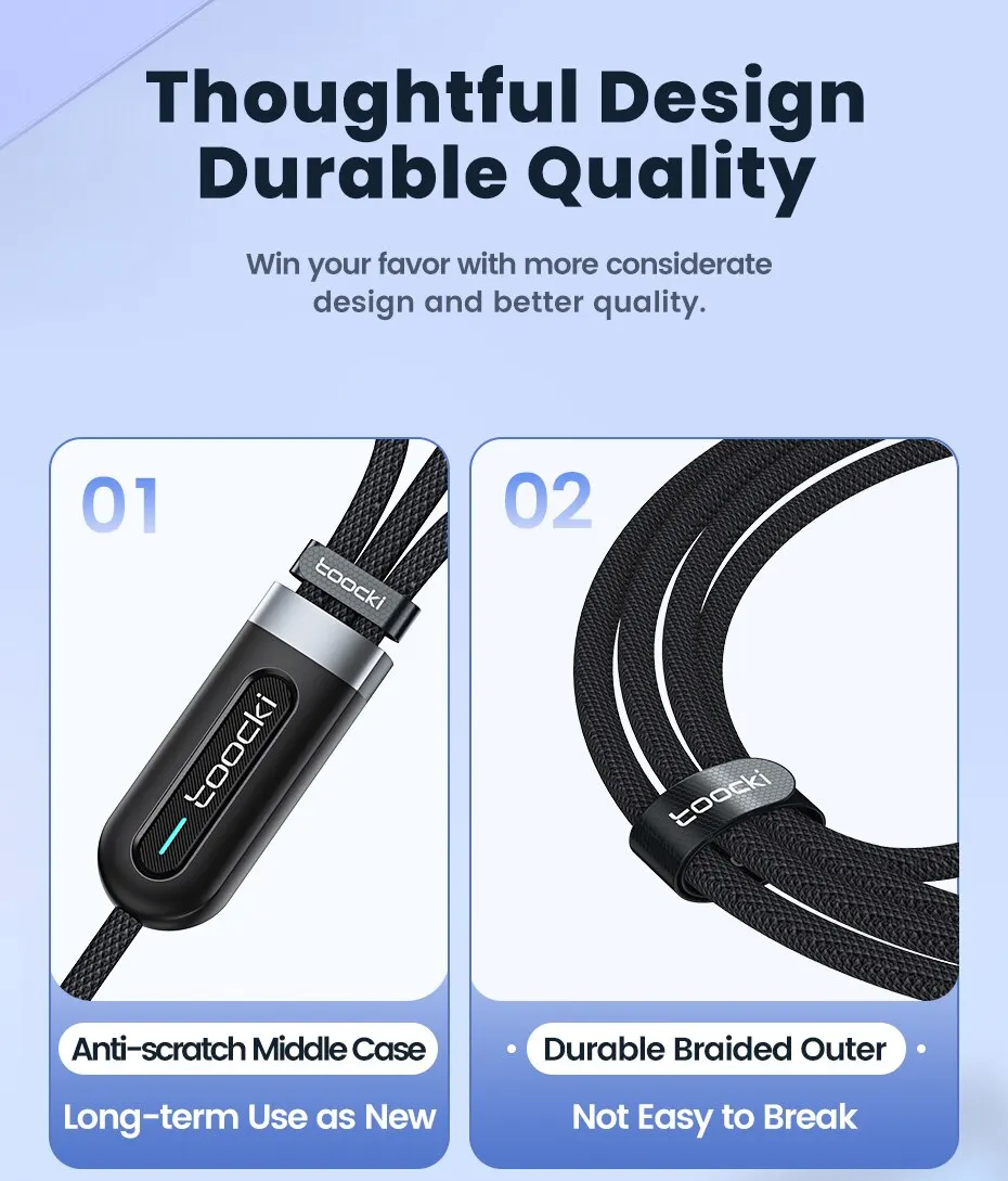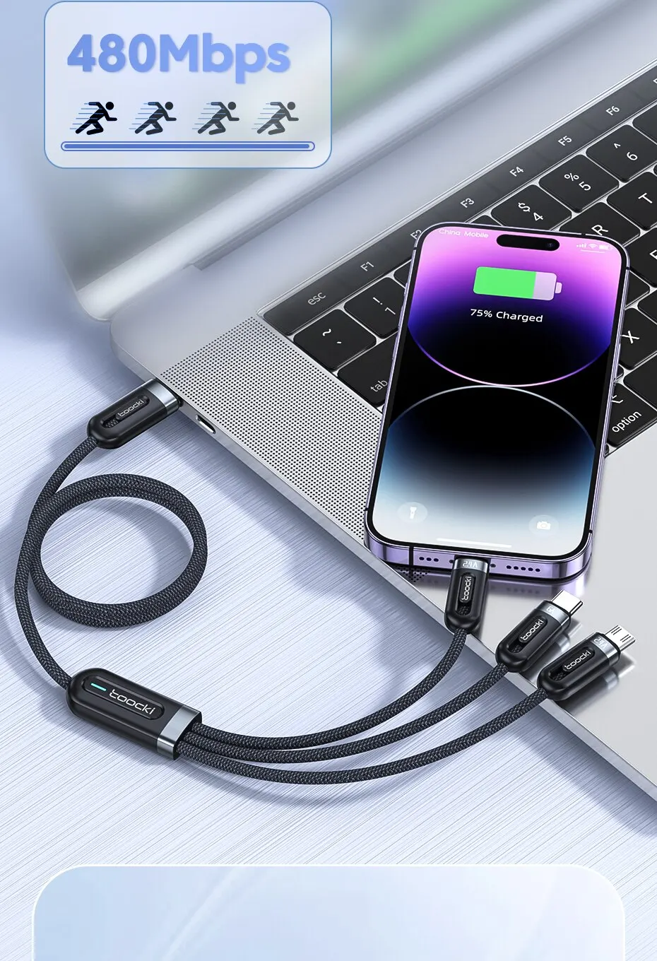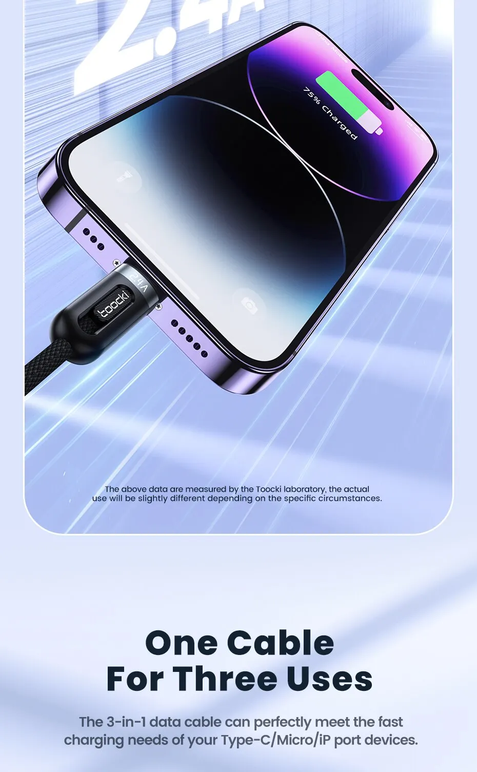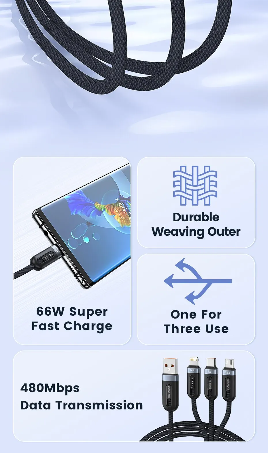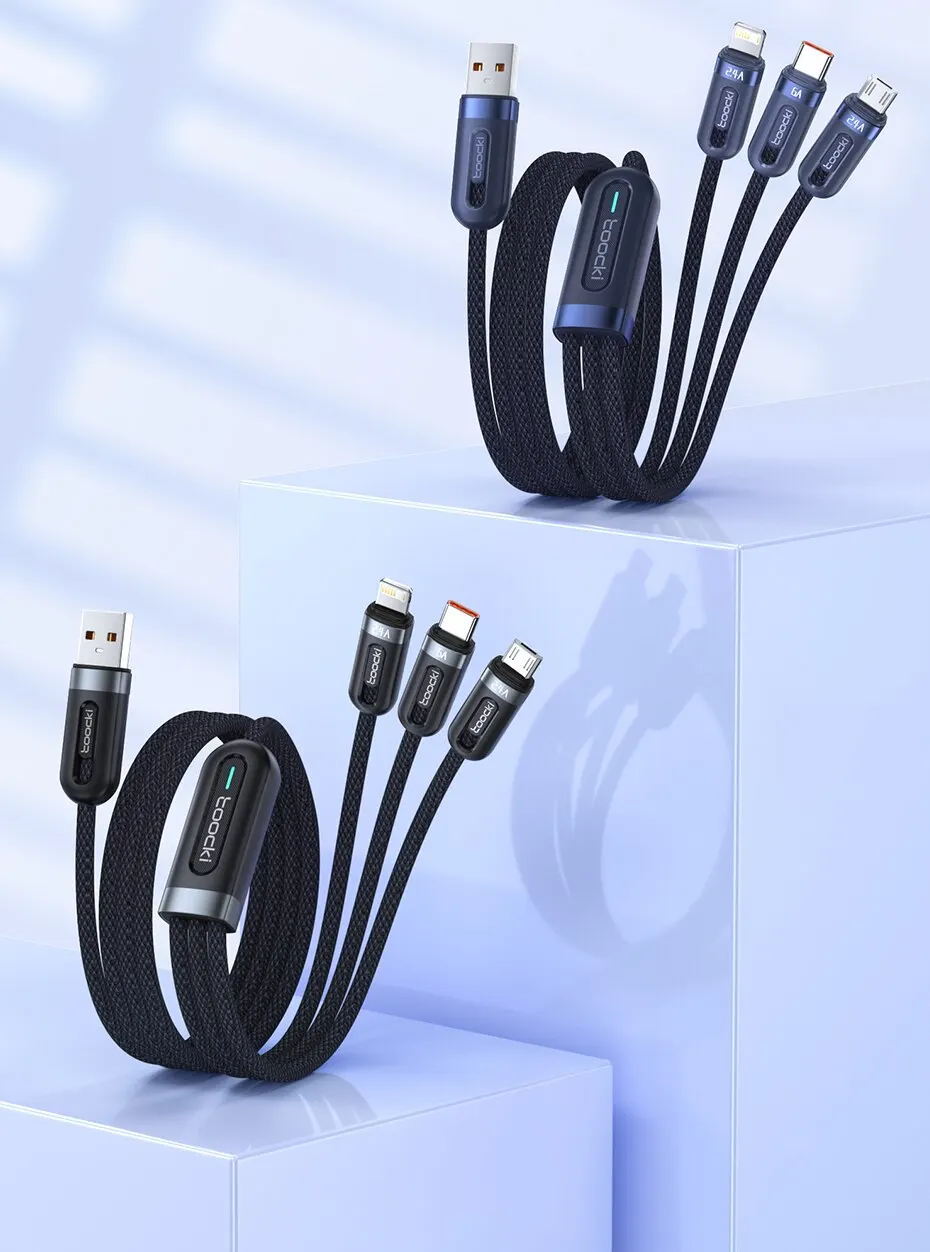Toocki 6A 3in1 Fast Charging Cable USB Type C Type-C Mobile Phone Cable for iPhone X Xiaomi Oneplus Realme Poco USB Micro Cables