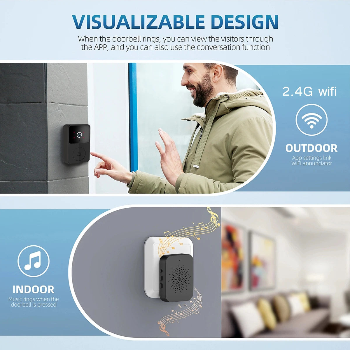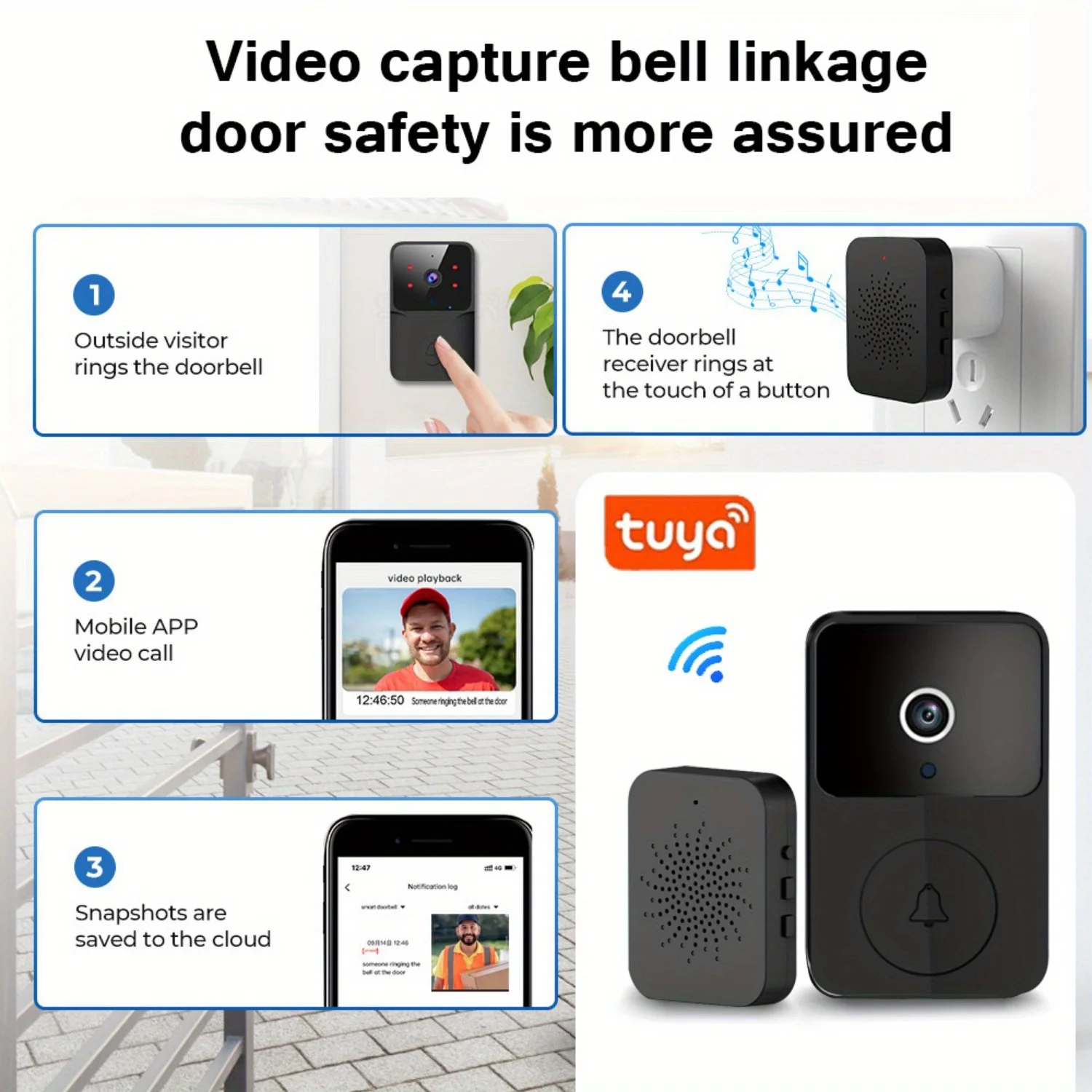 Tuya Wireless Video Doorbell, Smart Doorbell Camera Works with Tuya APP, HD Surveillance with Night Vision & Motion Alerts